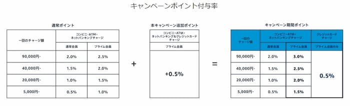 事前にギフト券にチャージしておけばさらにポイントが付く。詳しい数字は以下の表で。