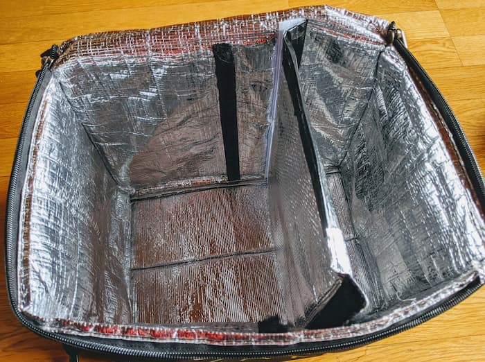 仕切り板のないタイプの配達バッグ(オージー)や、ソフトクーラーに自作仕切り板を使う方法を紹介。
