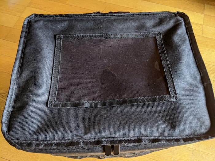 上部にはマップケースかな?一辺だけ開いているのでそこから薄いものを収納できる。前カゴ派には便利かもしれない。