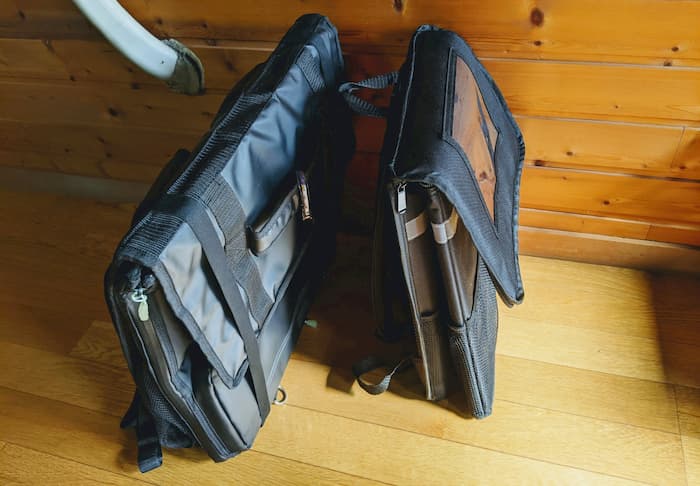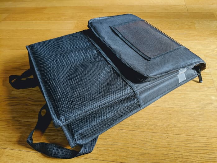 上部のビニール収納ポケットは浸水間違いなしだし、雨天時はカバー使うか違うバッグを使ったほうがいいだろう。
