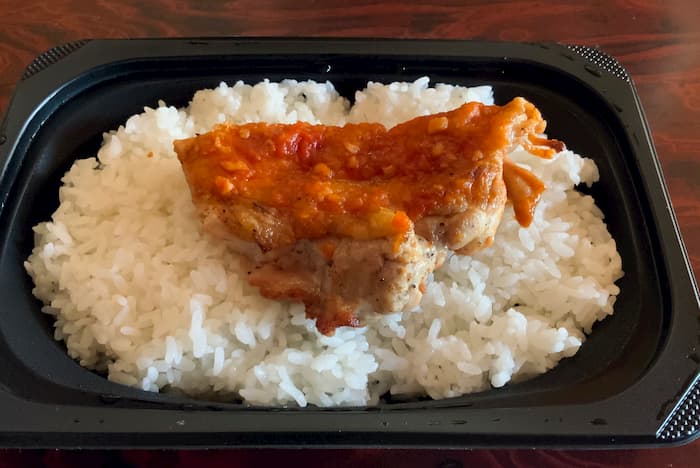 どうですか?ライスの7割ほどの大きさのチキン。このチキンより大きいハンバーグも控えてる。