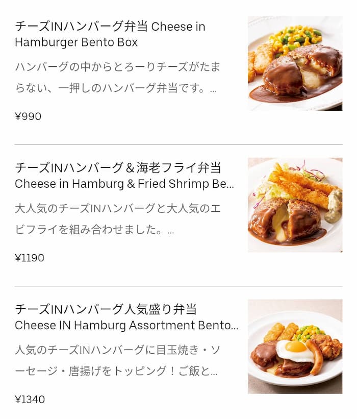 基本的にいつもハンバーグ弁当を運んでる気がする。いや、チーズinが1番人気かな。