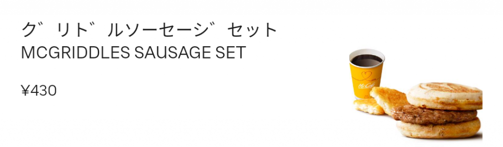 ハッシュポテトにグリドルソーセージに飲み物…朝マックの定番『グリドルソーセージセット』だ。