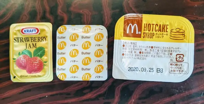 マフィンに付けるはずのイチゴジャムとバター・シロップを用意。