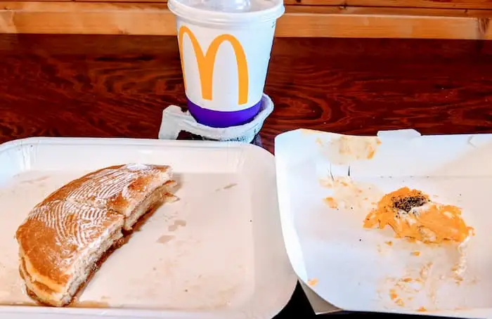 ハッシュポテトにグリドルソーセージに飲み物…朝マックの定番『グリドルソーセージセット』だ。