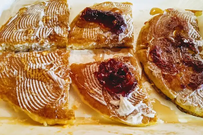 後半、激甘ホットケーキ作成するためにまずはプレートを切り離し右側の2つからいただくことに。