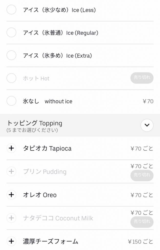 OWL TEAは商品の細かいカスタマイズが可能。甘さや、氷の量、タピオカの量、トッピングの種類など自分好みの配合を探そう。