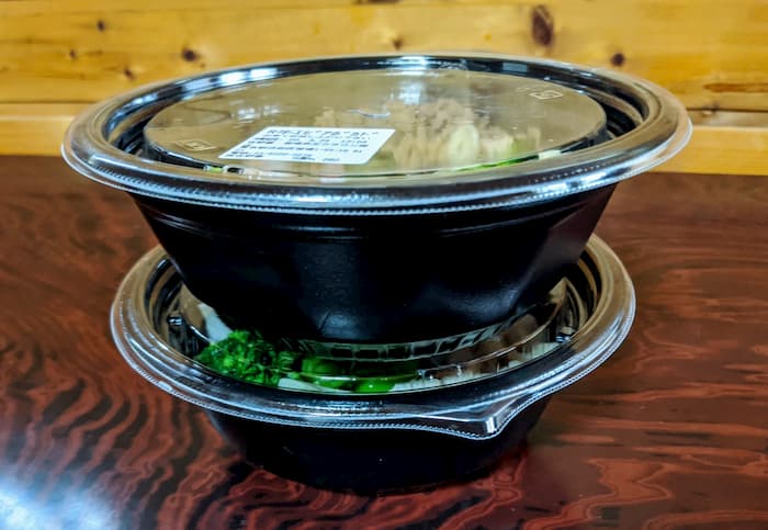 卵が別容器なのはgood。どんぶりに一緒に入ってたら配達中に振動でぐちゃぐちゃになっちゃうから。