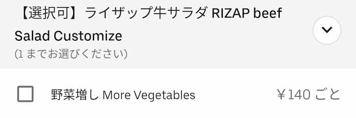 『ライザップ牛サラダ』のみ野菜増しのオプション(有料)が選べる。