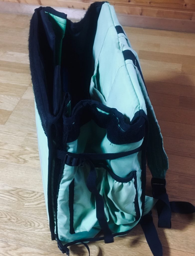 ワタシが今回紹介するのは「緑ウバッグの第2世代」。現行は「第3世代」で両サイドポケットが片側ドリンクホルダーのみになり、拡張もしやすいものに進化しています。