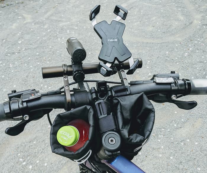 自転車にスマホホルダーを付けてスマホを装着。じゃあ充電のモバイルバッテリーをどこに置く?