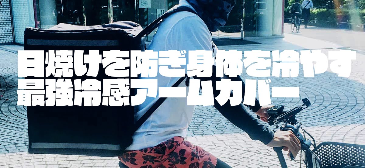 真夏のUber Eats配達に必須の冷感アームカバーをレビュー。日焼け防止・体温調節・速乾性を兼ね備えたアイテム。濡らすとさらに涼しい夏の定番グッズ。