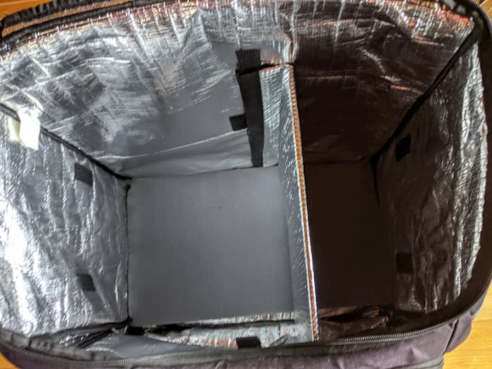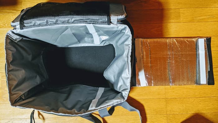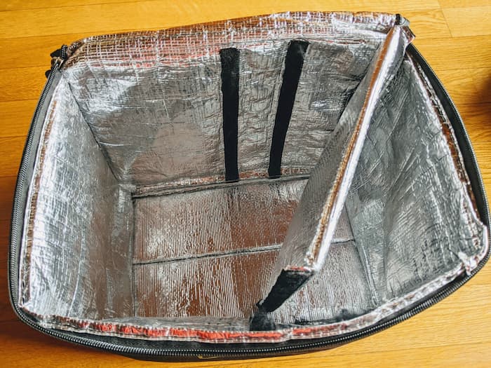 仕切り板のないタイプの配達バッグ(オージー)や、ソフトクーラーに自作仕切り板を使う方法を紹介。