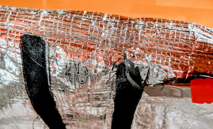 きっちりアルミシートをボードに沿わせて貼ろう。ブカブカでも問題ないけど。気をつけるのは、マジックテープを取り付ける面はテープ分の幅を余分に確保しておくということ。