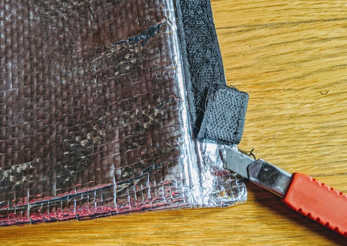 ウバッグの防水生地はカッターで切れやすいので注意。ワタシは右端を切ってしまった。