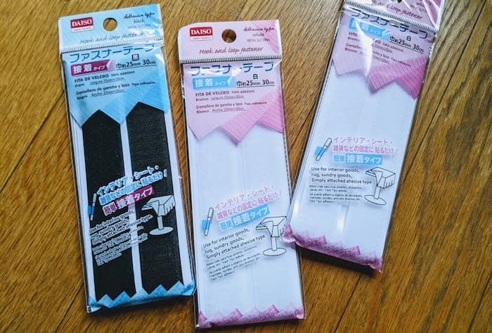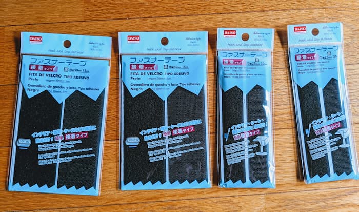 DAISOのファスナーテープ。サイズは2種類購入。接着タイプを買いましょう。