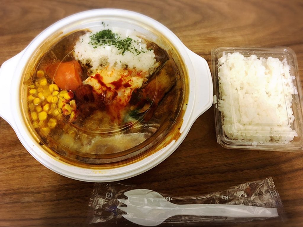 ごはん大盛り無料との事だったので**男は黙って「大盛り無料!」**て事で別容器でご飯が付いてきました!大盛りにしてルーとの感じも丁度良かったです。