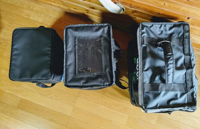 左:サーモス20L 中:軽量配達バッグ 右:新黒最新バッグ