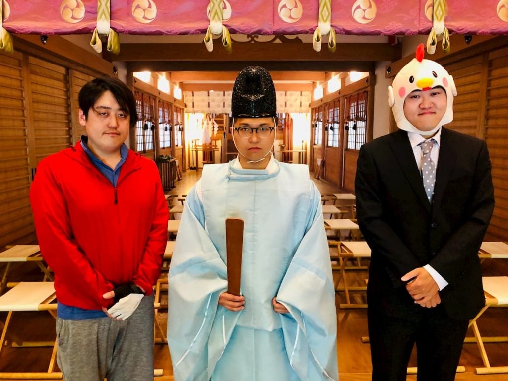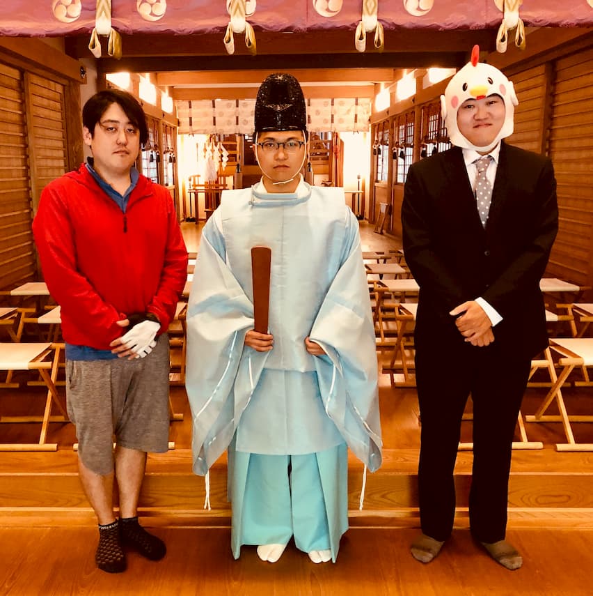 対決を無事に終えた2人と祈祷をしてもらった