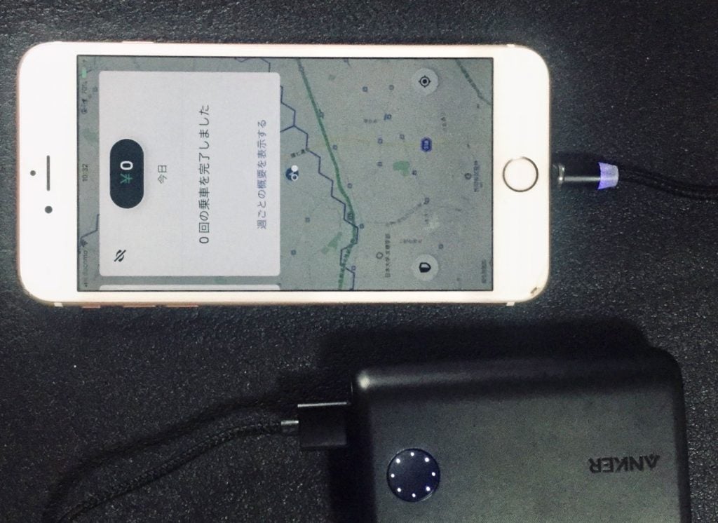 **店に着いてケーブル抜いて、ピックして差して、ドロップ先で抜いて、届けたらまた差して……**必然的にウーバーイーツ稼働中は何回もケーブルを抜き差しすることになる。