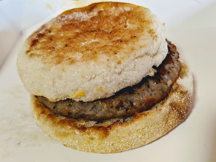 イングリッシュマフィンにソーセージパティを勝手に挟み食べてみた。
