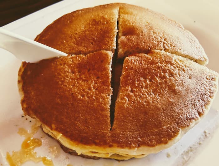すると、重厚なホットケーキ断層が現れる。奥深くの核までシロップがしみ込んでるのが分かるだろう。もう勝ったも同然だ。