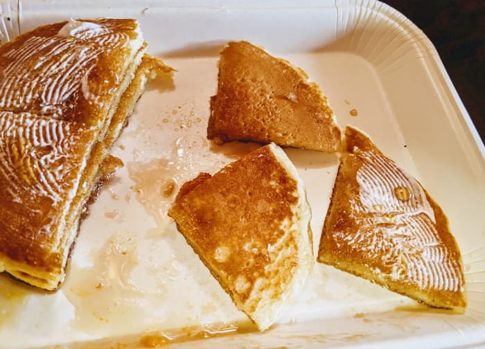 後半、激甘ホットケーキ作成するためにまずはプレートを切り離し右側の2つからいただくことに。