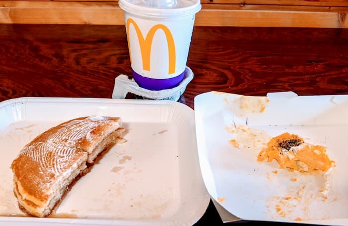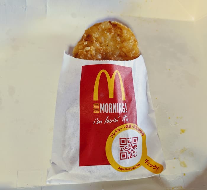 THE・朝飯前、朝マックの定番ハッシュポテトからスタート。うん、おいしい。