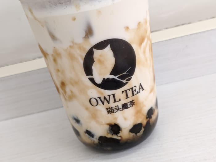 茶葉なしの生クリームや黒糖練り込んだタピオカが特徴のOWL TEA看板メニュー『ザンザン黒糖ラテ』を注文。
