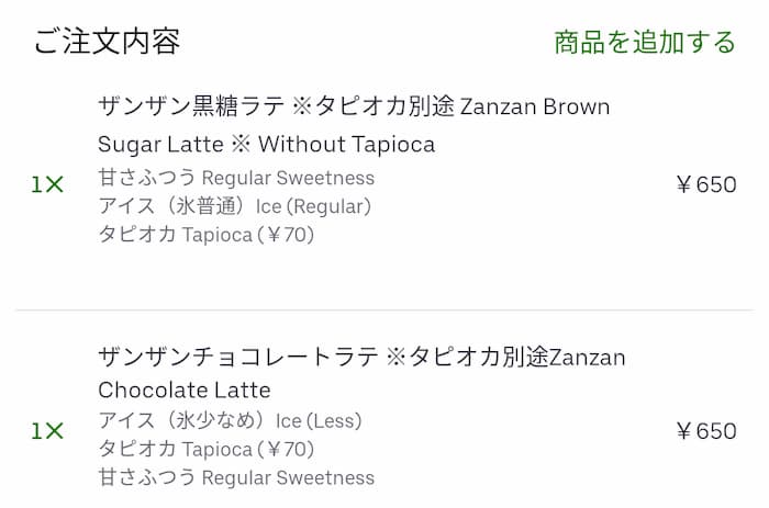 最初の設定では入ってません。Uber Eatsで配達してると「タピオカ無し」の注文もけっこうあるんです。さすがにタピオカ注文し忘れってこともないだろうから、素の味が美味しいんでしょう。