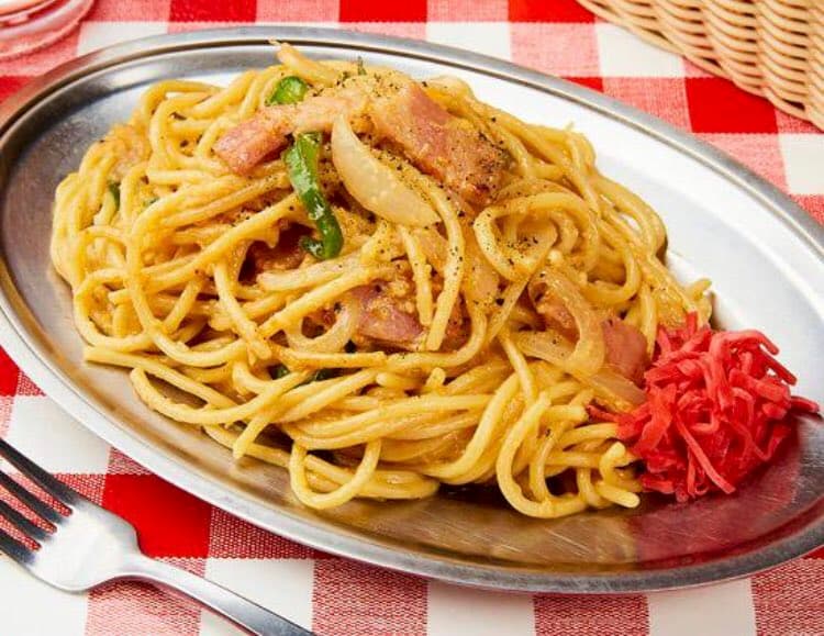 ナポリタン専門店が生み出した創作ナポリタン、白ナポリ。裏メニューでも存在感は抜群だが、やはりメインのナポリタンには及ばず。(ナポリタン全部乗せの評価はオール5)