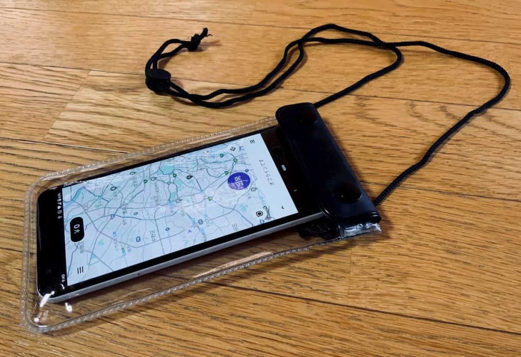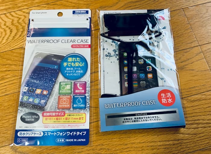 まずは100円ショップCanDoの防水スマホケースで十分でしょう。