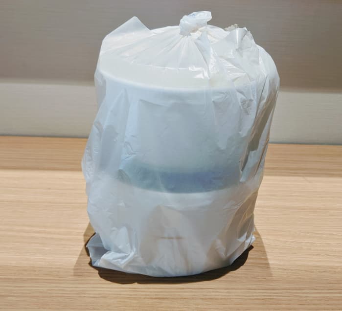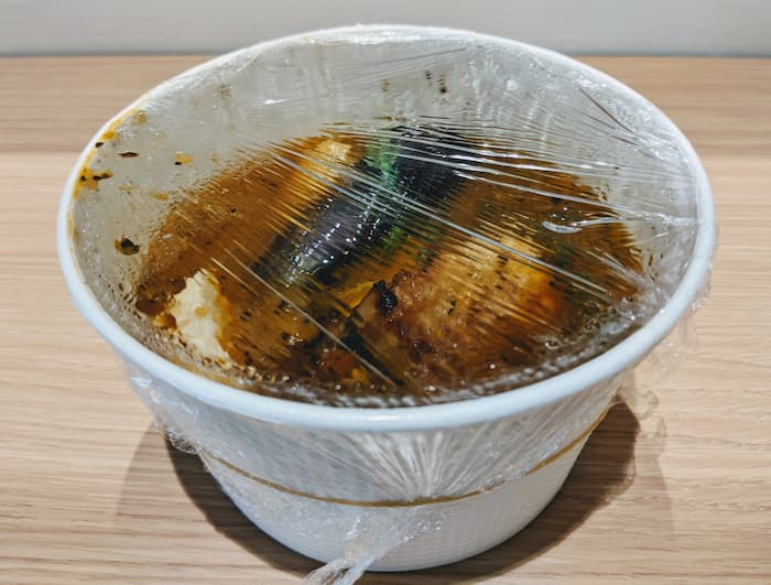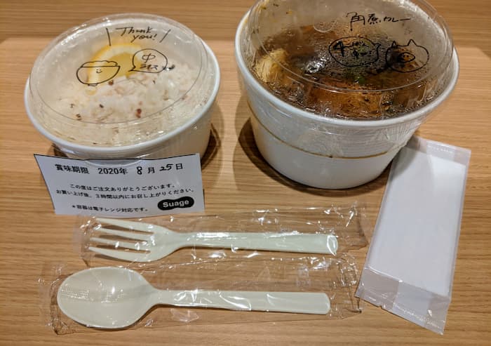 スープカレーの容器は蓋の下にラップ。さらに輪ゴム留め。完璧。これなら漏れない。