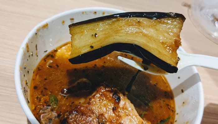 やはり…染み込むといえばナス。食べたら旨みがぶしゅうぅうう!スープカレー爆弾なすが炸裂!