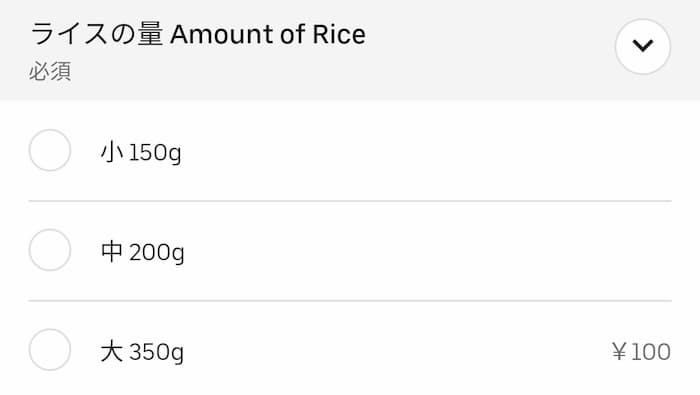 ライスの量も選べるので胃袋や体調に合わせて決めましょう。
