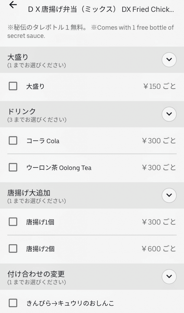 お店のテイクアウトの方が安いけど、注文が入って配達パートナーが到着しそうなタイミングできっちり揚げてくれるアッツアツの『DX唐揚げ弁当』をUber Eatsでどうぞ!