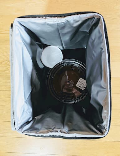 けっこう入りますね。大型や温かいものを20Lに入れて、外のスペースにドリンクいう構成が基本スタイルになりますね。