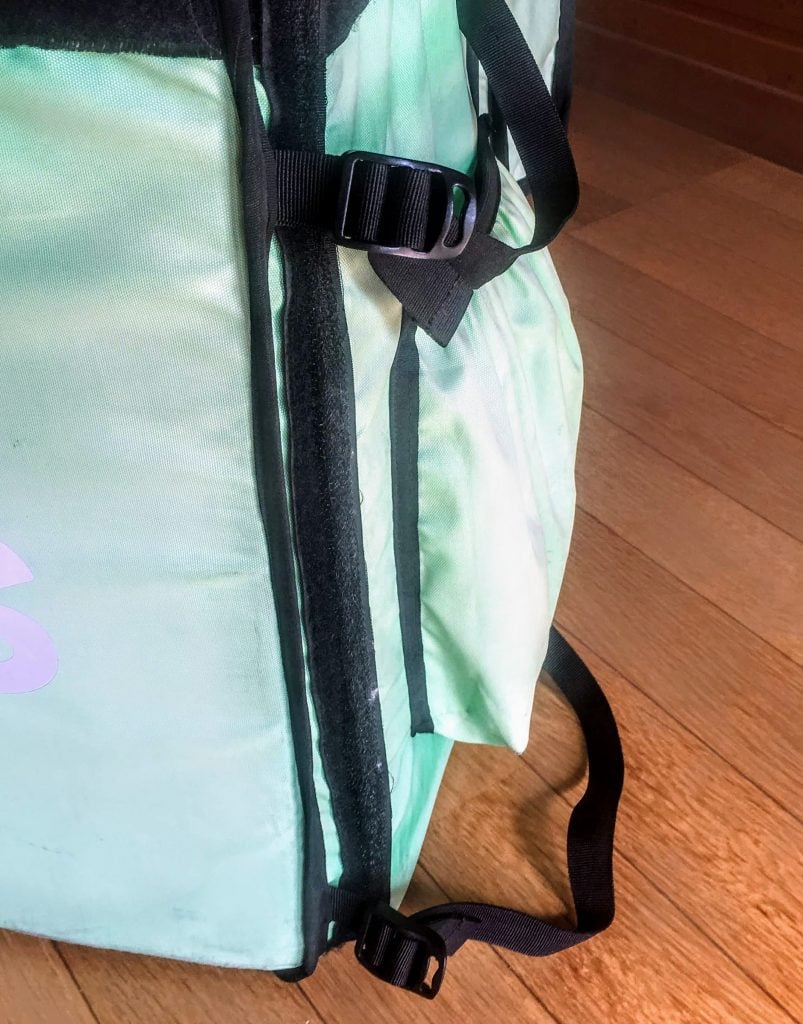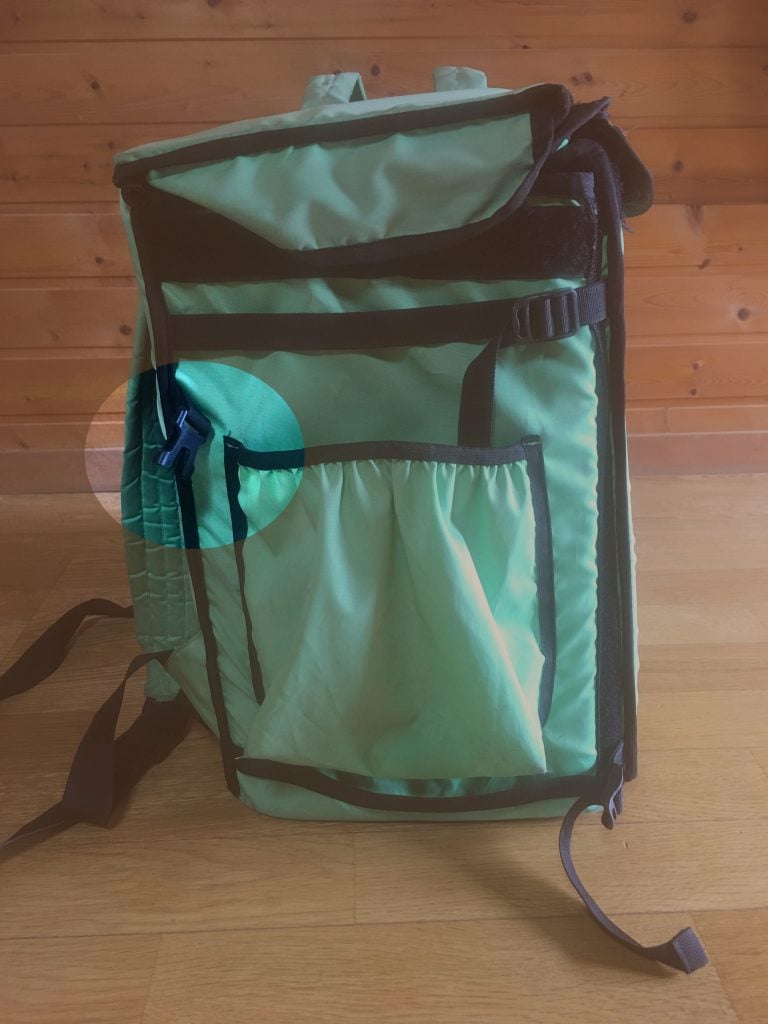 この緑の配達バッグ、第2世代の特徴といえば左右についてるサイドポケット。