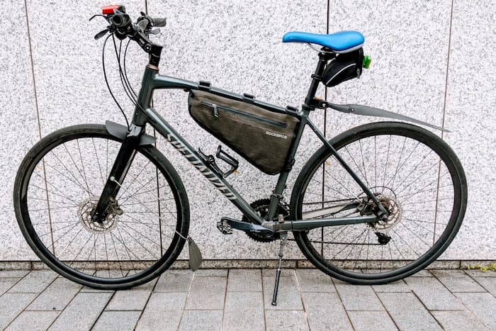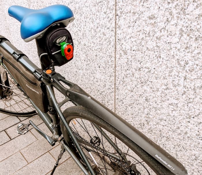 トピークのリアフェンダーがカッコいい。サドルバッグに着けたUber Eats配布のリアライトもいい感じ。