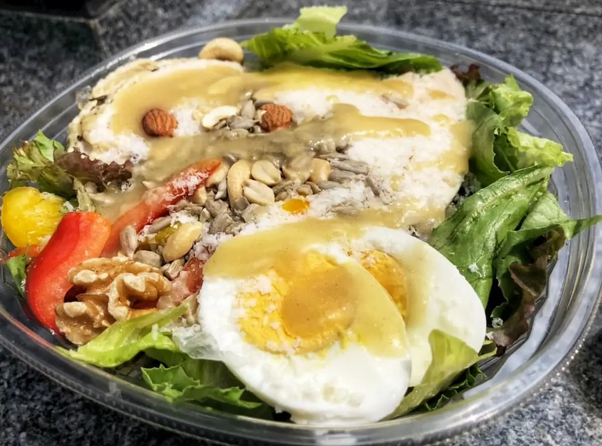 西新宿【サラダデリマルゴ】の「プロテインリッチ パワーボウル」をレビュー。ダイエット・ボディメイク中でも美味しく満足できる。味も機能性も文句なしの一皿。